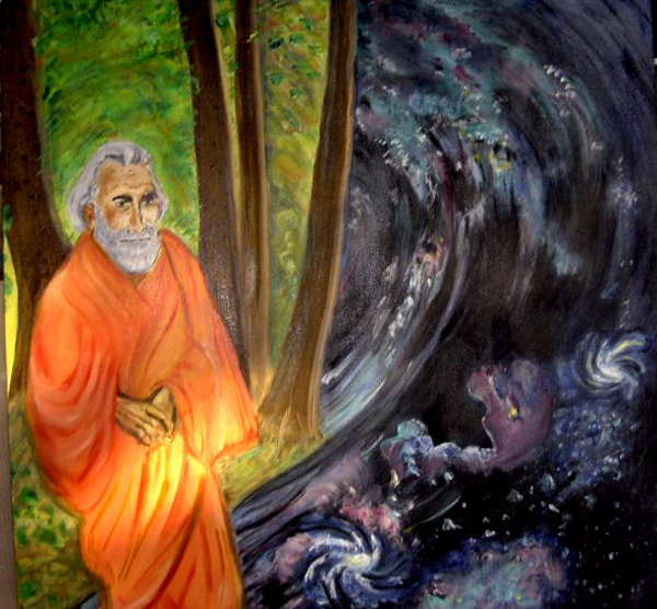 Pir Vilayat Inahat Khan, Sufi Order of the West. This portrait is dedicated to Rabia Longworth, my spiritual teacher, the heart and soul of the Abode of the Message, New Lebanon, N Y. 32 X 32 " or 80 X 90 cms. Pir Vilayat died on June 17, 2004, please view this memorial to Pir Vilayat.