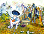 I am an expressionist painter, inspired by Van Gogh, Cezanne, Gauguin, and Monet. I am painting my vision of the world in archetypal imagery that reflects a deep relationship I have with a Conscious Cosmos. I feel creativity is the same power as healing. Taken together as a body, my paintings express a mythos – a meaning for our zeitgeist to form a qualitative leap in consciousness, a world view.